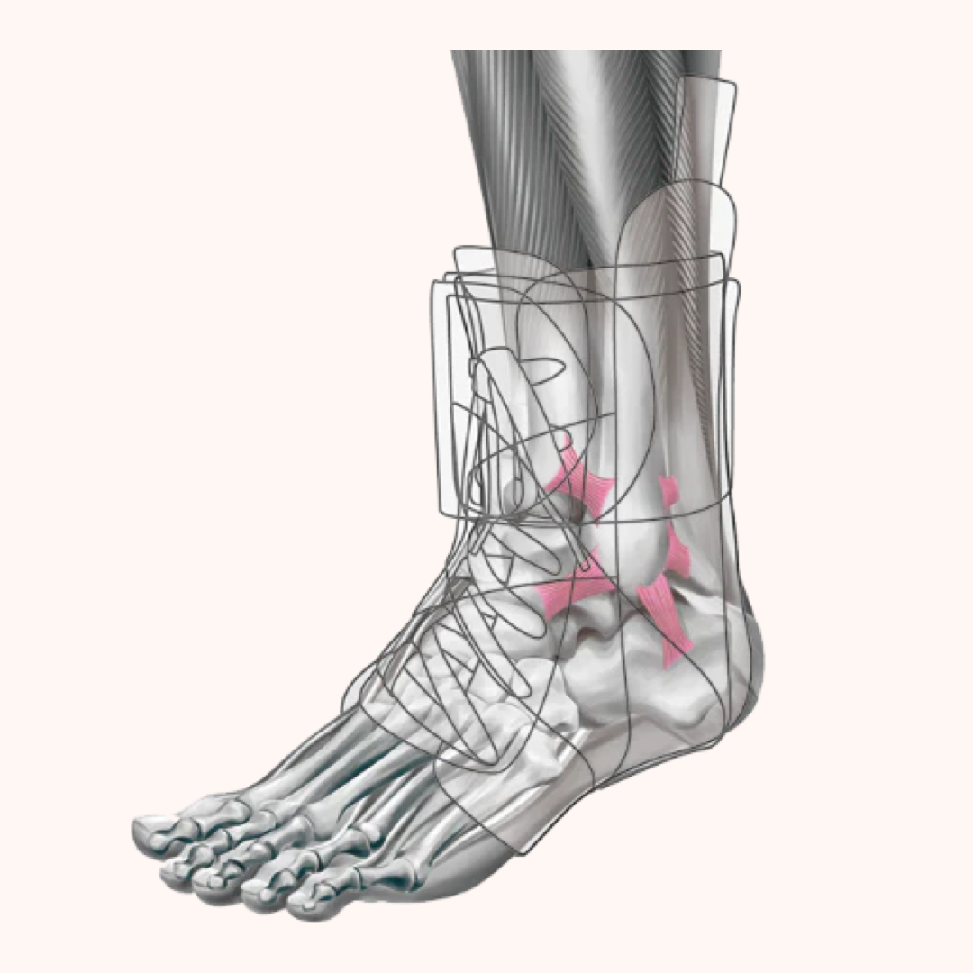 1. フィギュアエイトとスターアップの2本の非伸縮ストラップが、足の捻じれを抑えます。