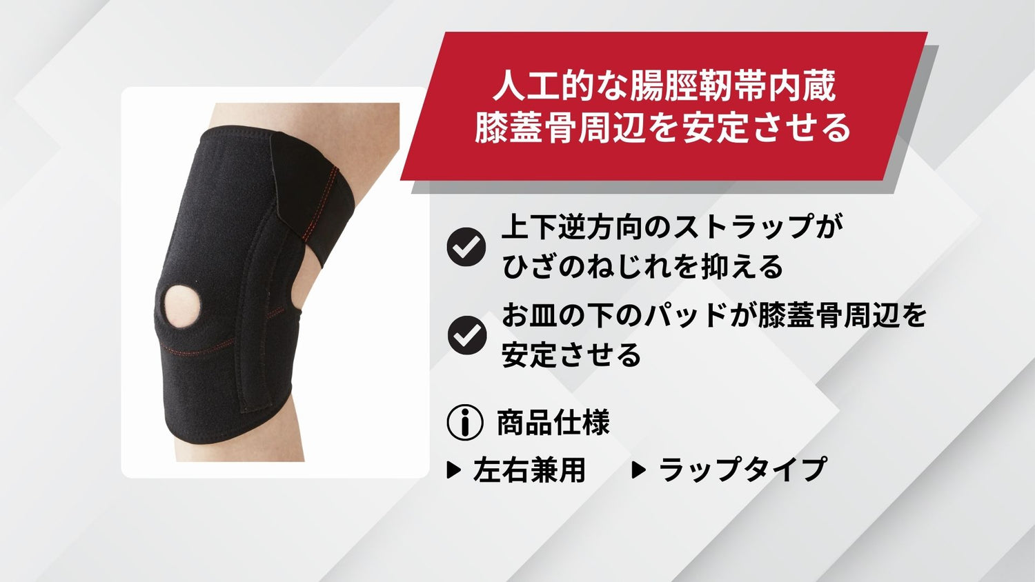 用途:日常生活からケガの再発予防まで。関節を快適にサポートします。