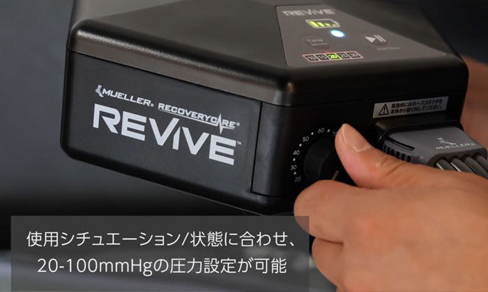 リカバリーケア リヴァイブ™ の本体及びガーメント(ブーツ)は、正確な空気圧力レベルで断続的にマッサージするように設計されています。この断続的な空気圧迫マッサージの技術は、筋肉のこりをほぐして、血行を促進し、疲れを取ります。