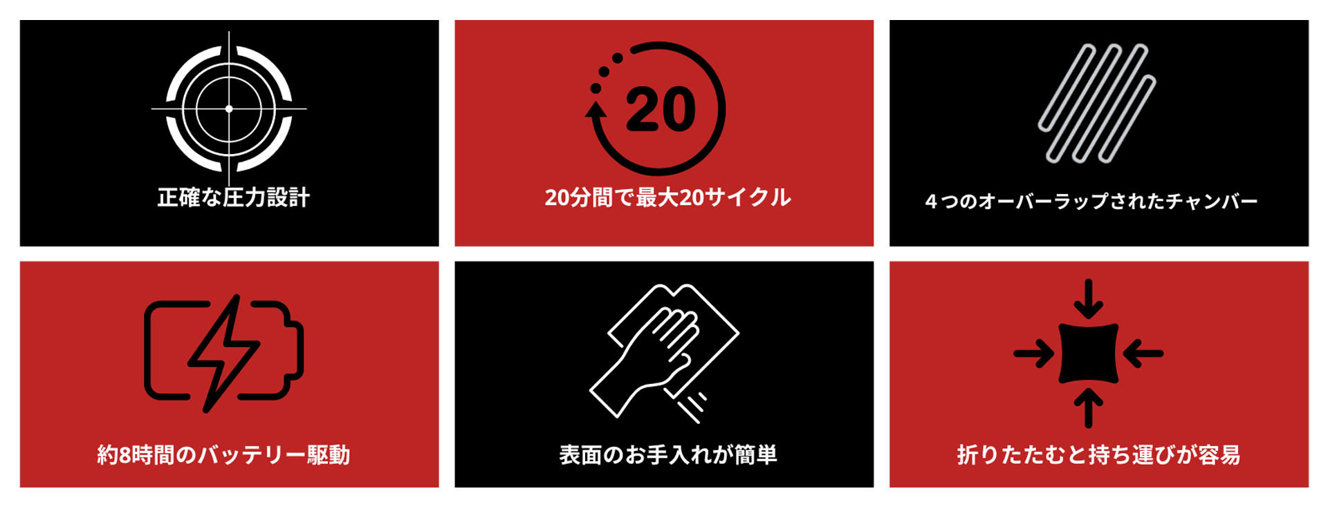 アスリート及び一般の方向けに開発された家庭用エアマッサージ器